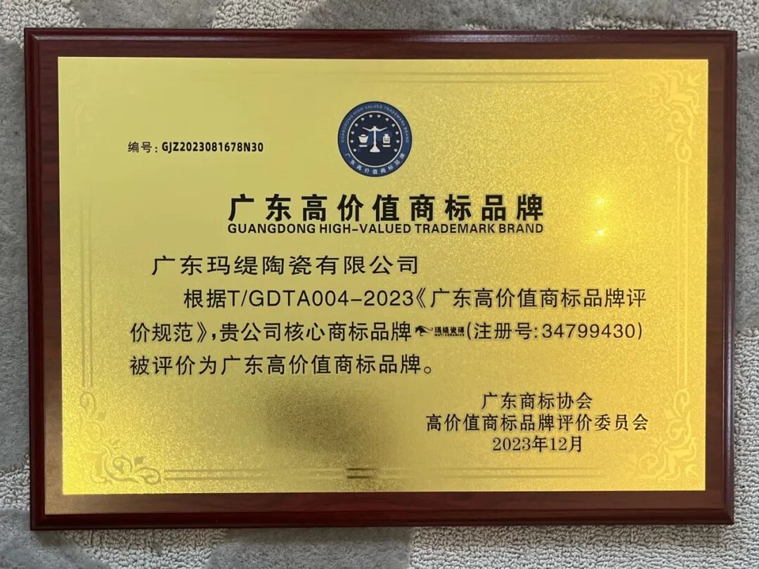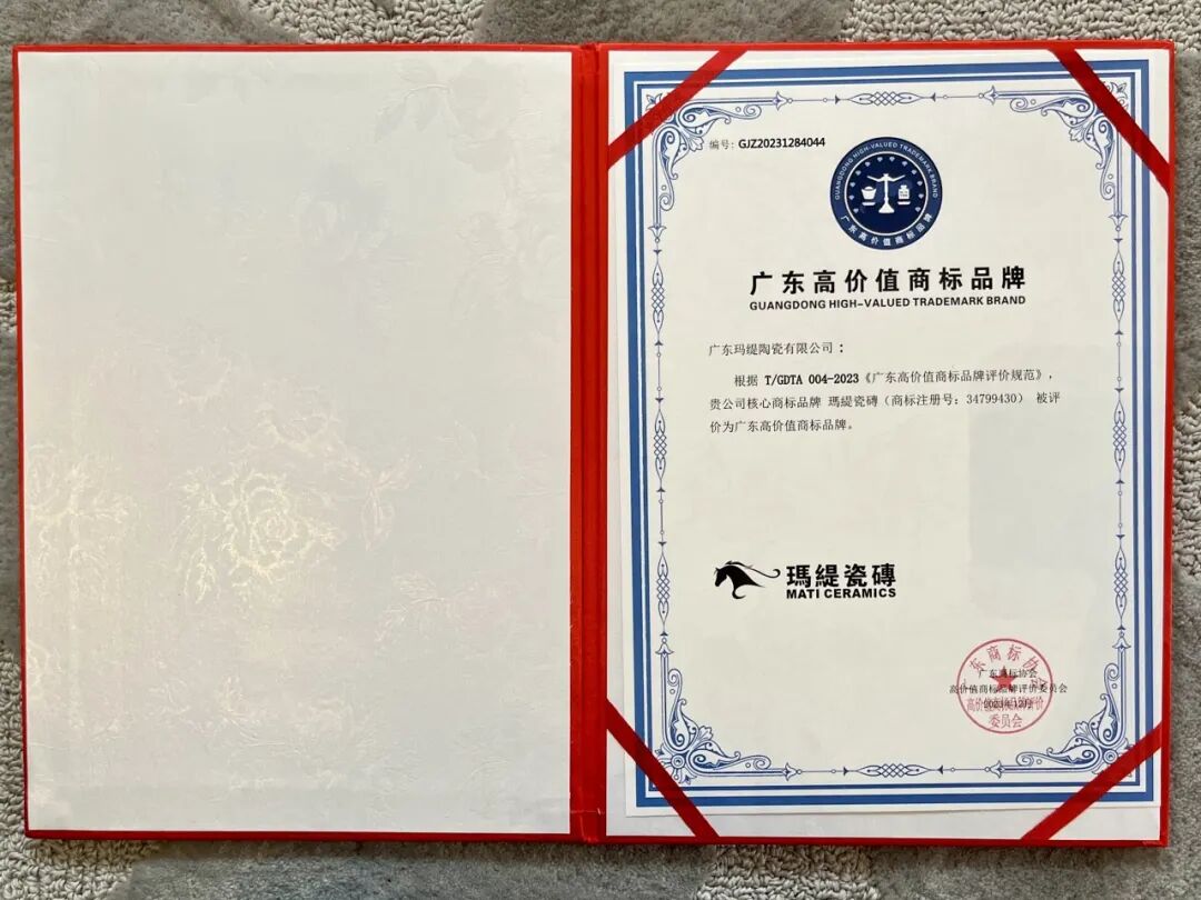 榮耀時刻 | 瑪緹瓷磚入選“廣東高價值商標(biāo)品牌”榜單!